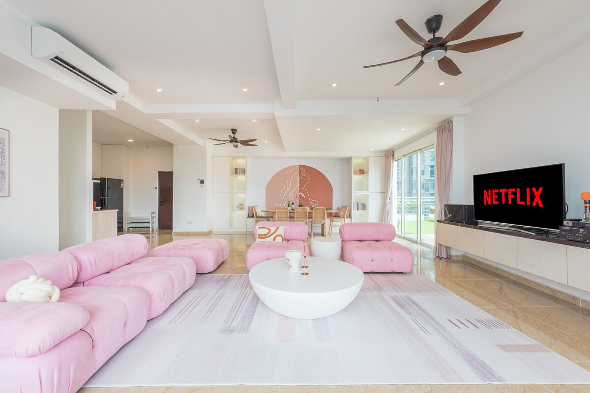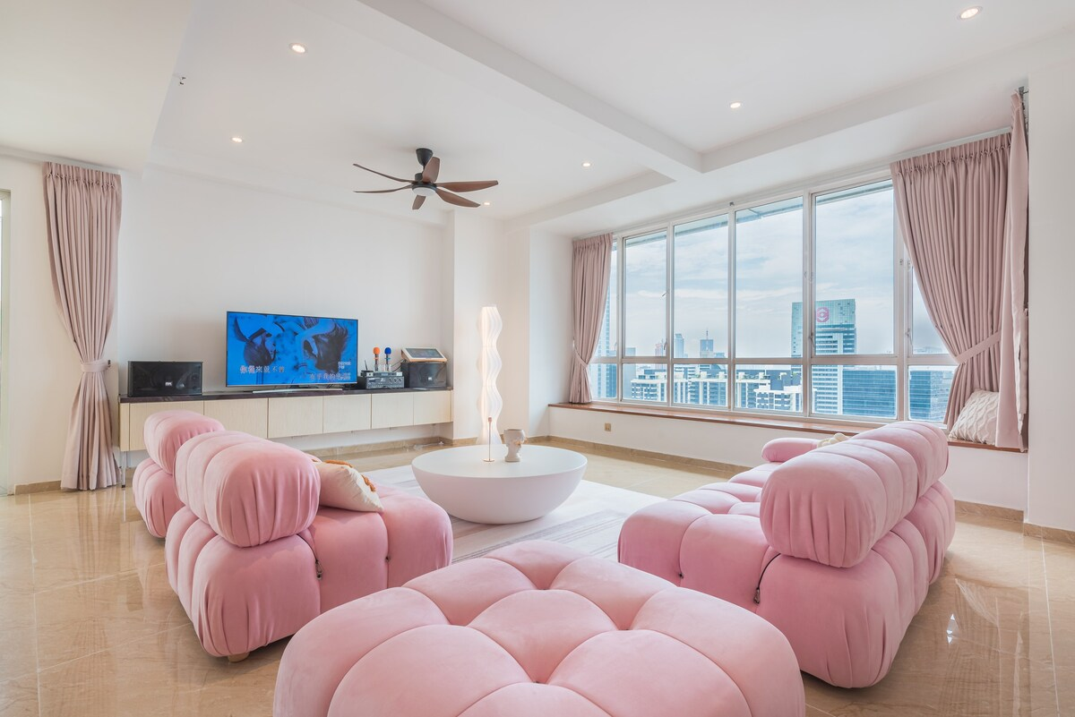 从霍格沃茨出来,下一站,芭比!开个玩笑啦,虽然这家民宿以粉色为主调,但和芭比毫无关系~ 大家看韩剧应该对 Penthouse 不陌生吧?现在有机会来亲身体验一下啦!这家超豪华 Penthouse 可以让你居高临下将吉隆坡市貌尽收眼底,景色无价~ 室内设计以粉色和木质调搭配,营造温暖舒适的感觉,还有精心布置的露天阳台,躺在这里看星星也太 chill 啦~