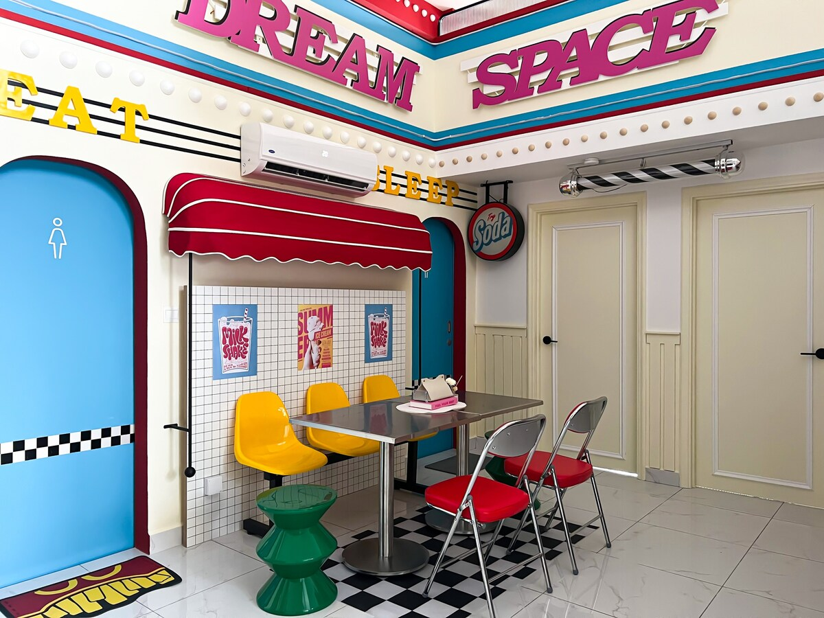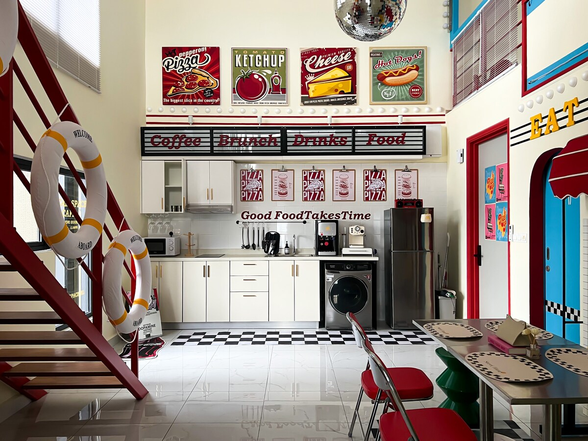 这家美式复古风的 Airbnb 之前也给大家推荐过啦~ 设计真的很用心,大胆复古的配色让人眼前一亮,释放多巴胺!房子里的每个空间都被设计成不同场景,比如“快餐店”用餐区、“芭比海滩”客厅等等,仿佛穿梭在一个个为拍摄电影而搭建的摄影棚呢~