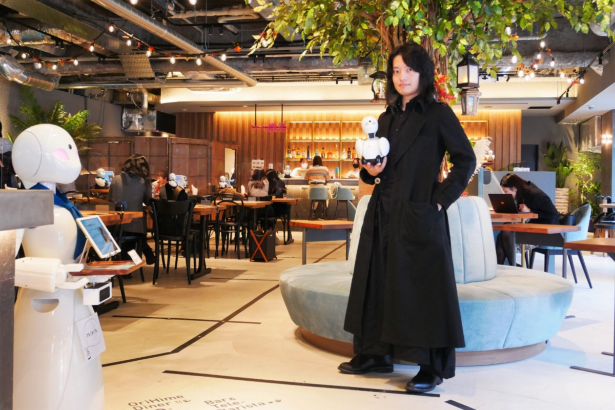「分身机器人咖啡厅 DAWN ver.β」的创办人是吉藤健太郎(Ory Yoshifuji),他从高中时代便拿下许多科学发明奖,OriHime 机器人也是他的研发成果。吉藤在小学至国中时期,曾经因为生病而无法上学,不能和朋友玩耍,不能去旅行,让他萌生出制作「分身」的想法,就像创造一个游戏角色一样,让Ta代替自己在世界上行走。