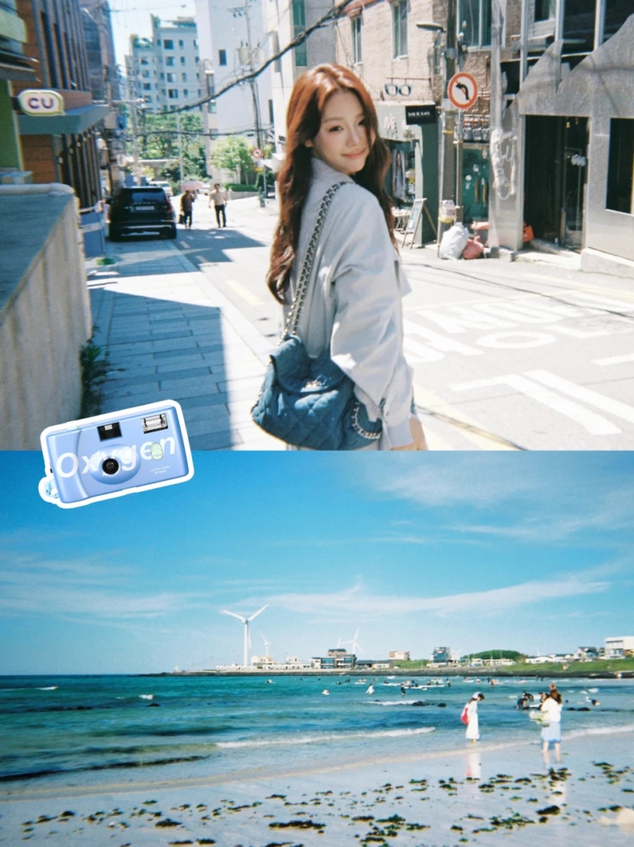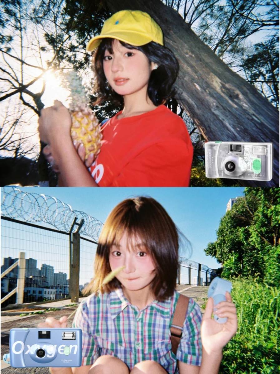 👉 氧气相机 使用 C200(ISO200)胶卷,感光度较低,最适合晴天或强光环境。画面颗粒少、层次细腻,肤色通透柔和,整体风格偏“清新感”“氧气感”。