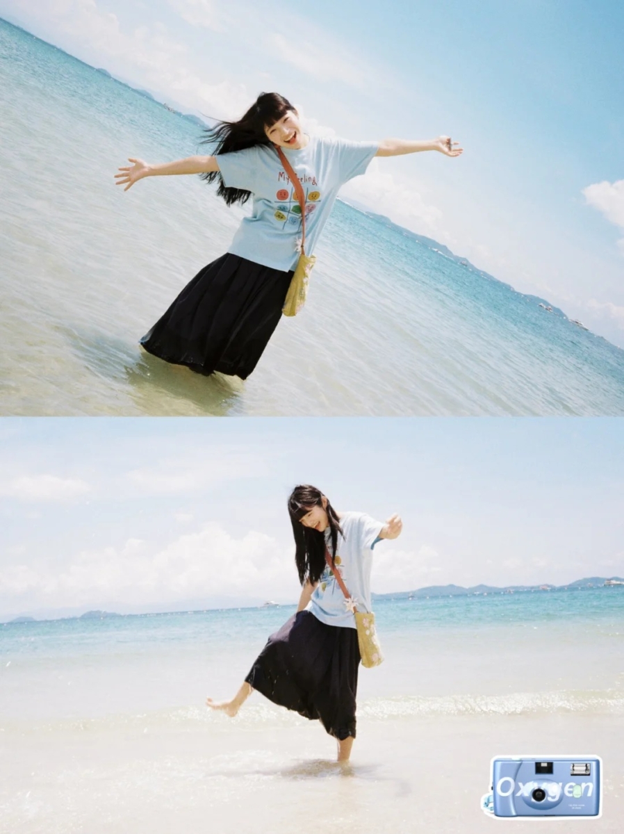 无论是沙滩漫步、咖啡厅窗边,还是蓝天下的街景,只要光线好,画面立刻变得细腻干净、色彩通透,带有自然的胶片氛围。
