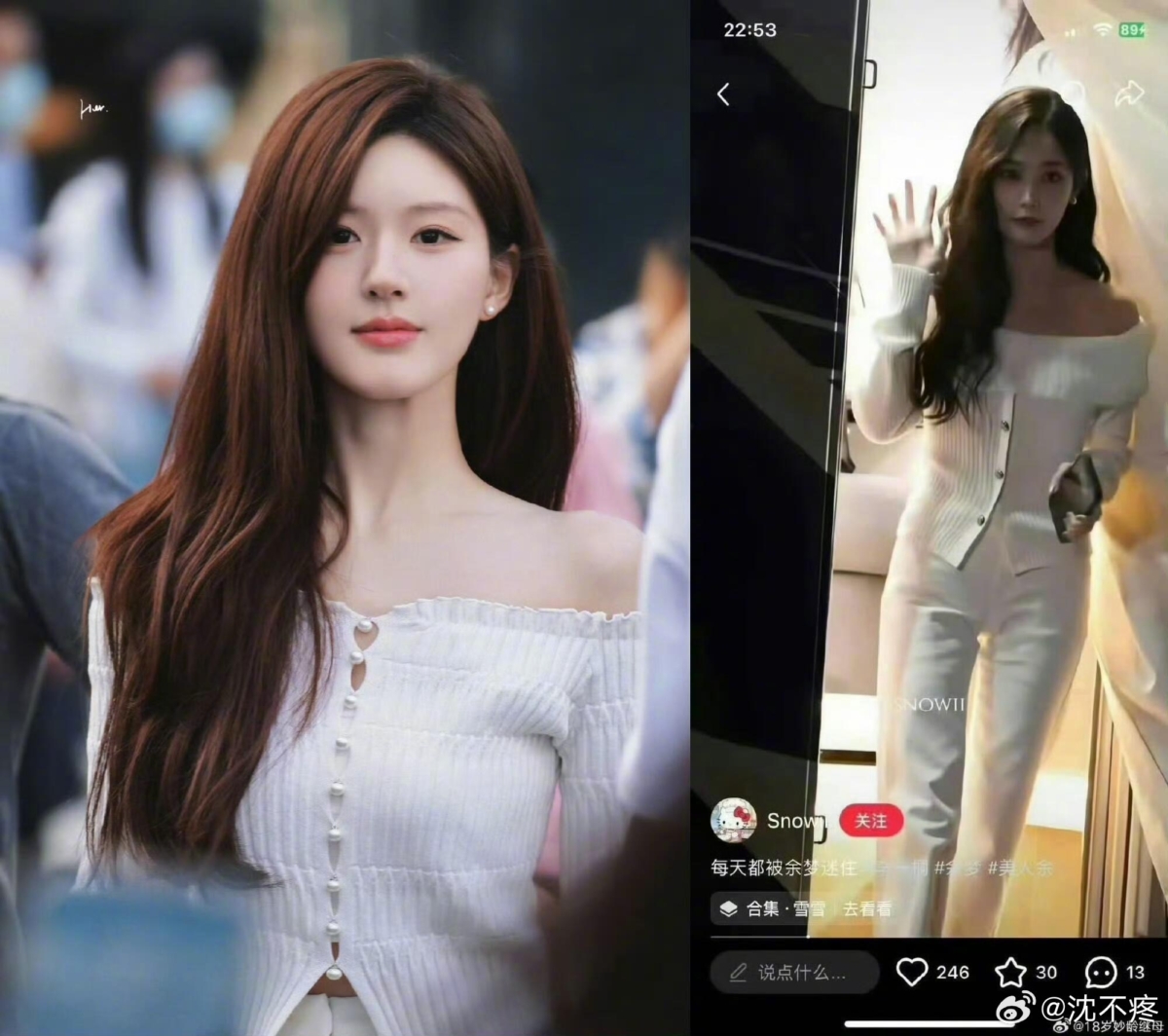 于是评论区瞬间炸了:“这不是许妍本人吗?”、“连刘海的弧度都copy,也太离谱了吧…”、“这不是致敬,是照搬。”、“赵露思《许我耀眼》的造型很多都是她本人参与搭配的,属于原创风格。”、“连发型分线都一样,还能说巧合吗?”“支持造型卷起来,但别卷成复印机好吗?”更有网友调侃:“这哪是撞造型,是Ctrl+C+Ctrl+V吧”