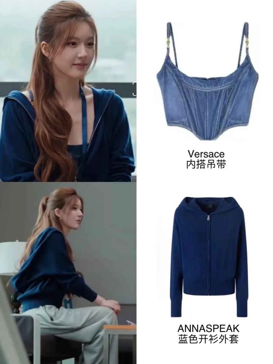 在造型搭配上,她会选择带有设计感的衬衫、针织长袖衫,搭配牛仔裤、长裙等,平常坐班这么穿,既保持了专业形象也不失舒适感~ 其中最出圈的一套莫过于蓝色卫衣外套和卫裤的搭配,休闲又时尚,下班后就能直奔运动或逛街啦!
