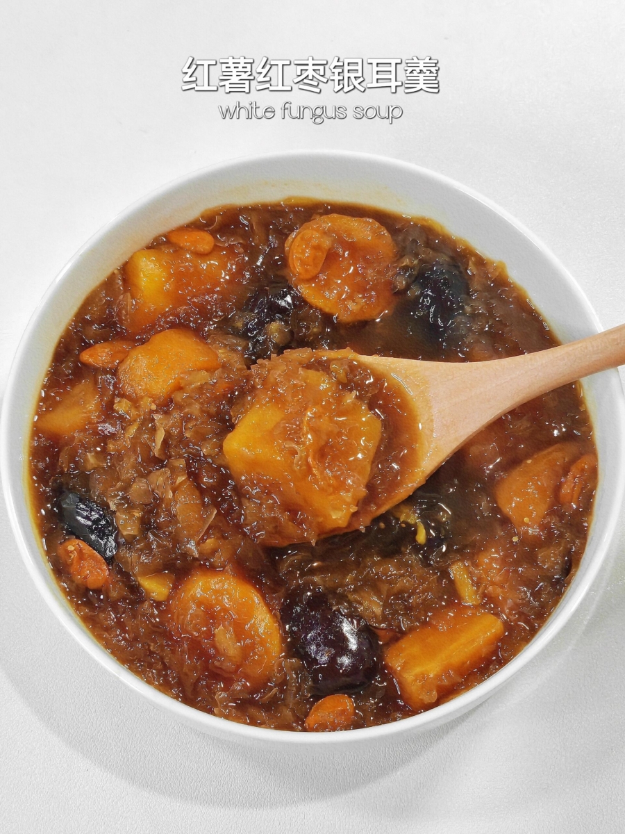 红薯银耳少女皮肤的好朋友!银耳富含植物性胶原蛋白,红薯帮助调节肠胃,加上红枣枸杞,简直是秋冬标配~