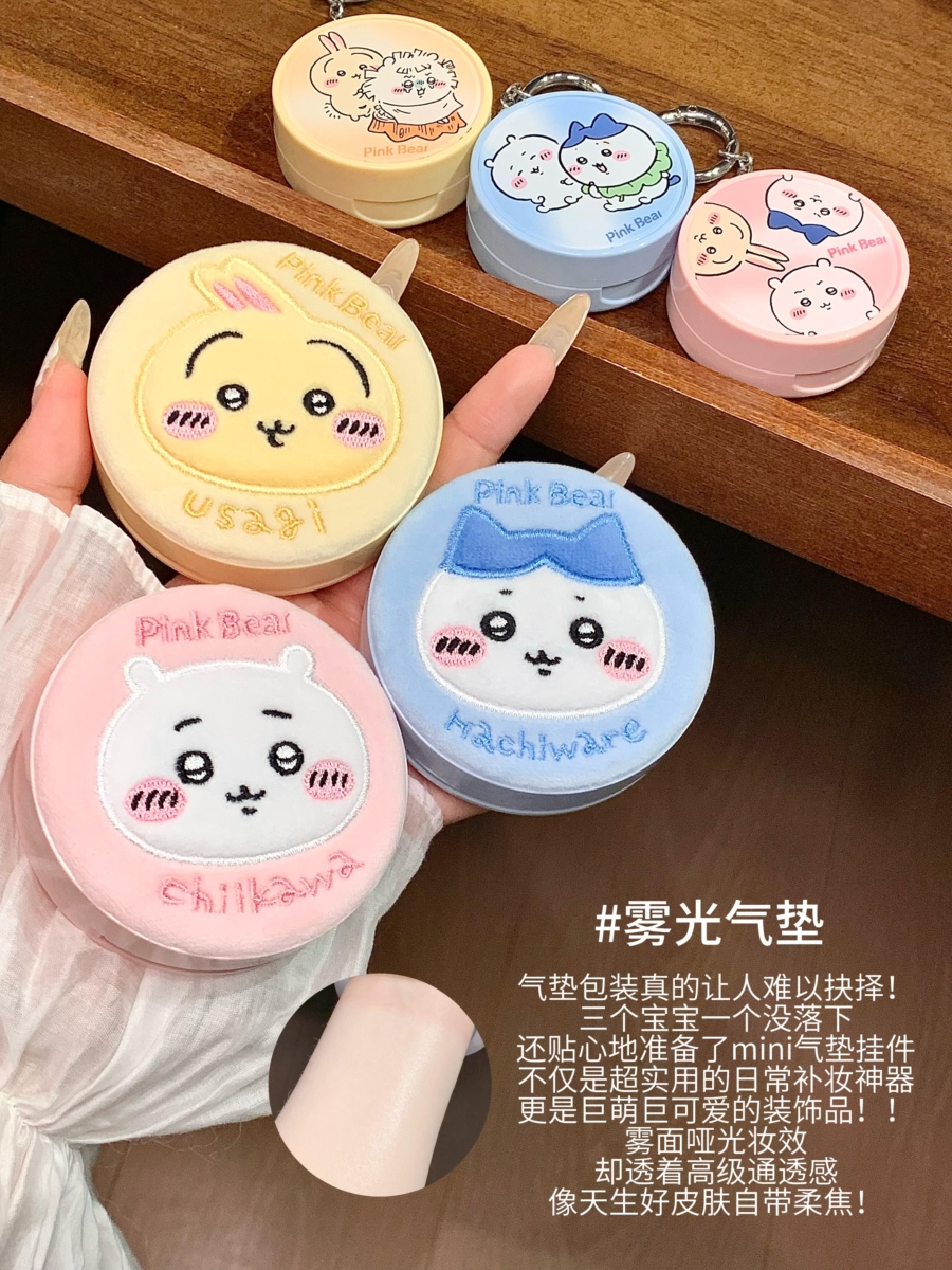 最后压轴的当然是家最受欢迎的雾光气垫。这次不仅外壳变身萌物三选一(吉伊卡哇哈奇喵乌萨奇),连妆效都更细腻服帖。粉质超细,上脸轻薄但遮瑕力强,混合皮、油皮都能稳稳持妆一整天。皮肤状态差时拍上去,瞬间透出柔光磨皮肌~