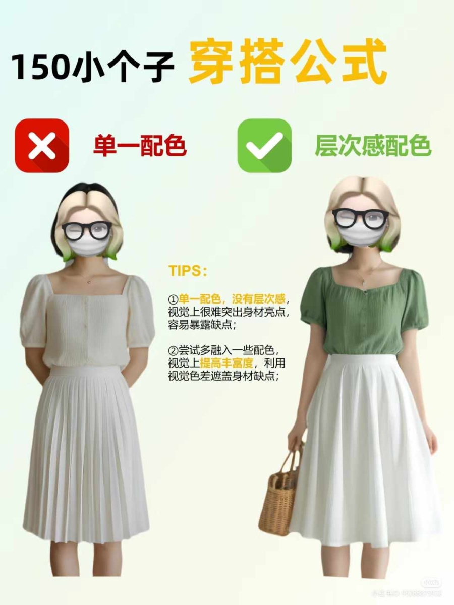不仅如此,要记得过度宽松的衣服,会让身形看起来五五分、矮上加矮。可以选择紧身的短上衣,搭配字短裙,来突出身材曲线,放大优点~