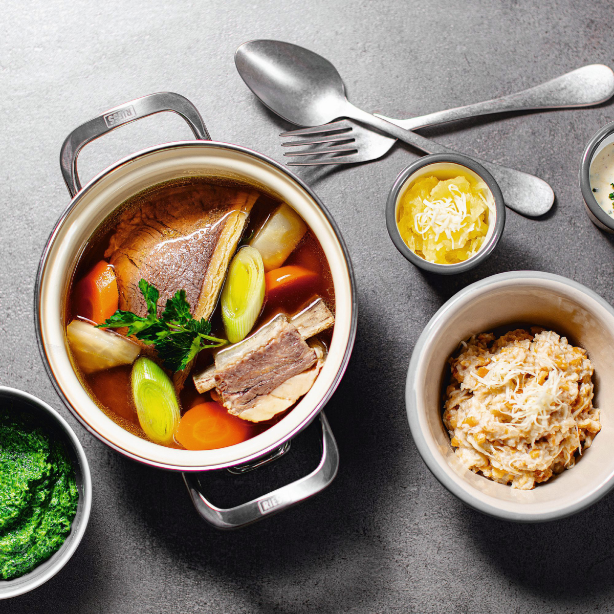 这道皇室料理使用慢煮牛肉,搭配辣根、苹果泥和蔬菜汤食用。Plachutta 餐厅是此菜的代表店家,保留了传统的奥匈饮食风格。