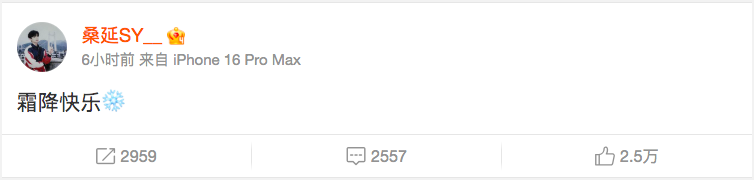 这不仅是节气祝福,更像是剧中桑延穿越荧幕,对剧外粉丝发出一声温柔召唤。嘿,又到霜降了,我们的故事还在继续。