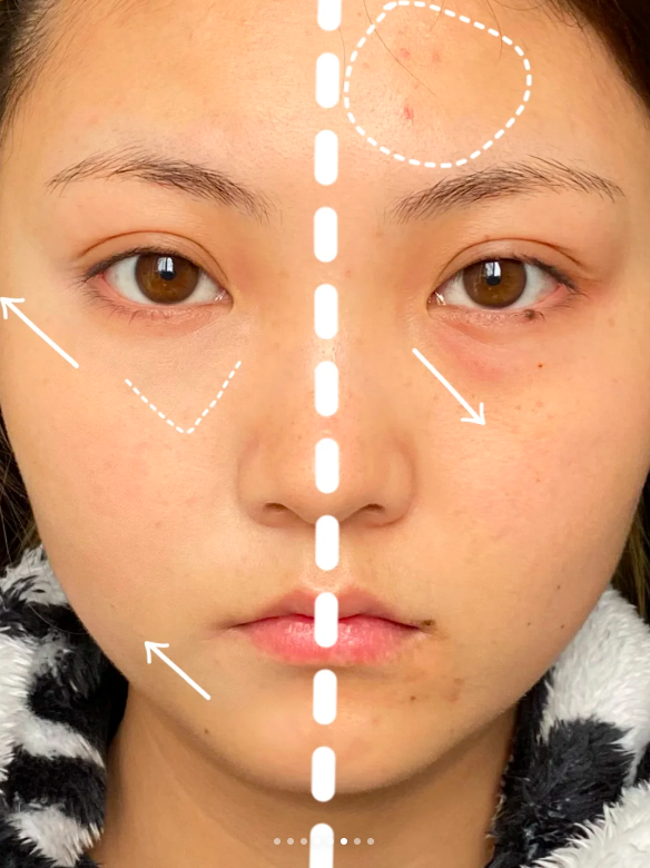 然后不用再事先画在手背,可以直接涂在还没被彻底遮盖掉的黑眼圈位置,之后再向周围小范围晕染自然就大功告成咯~