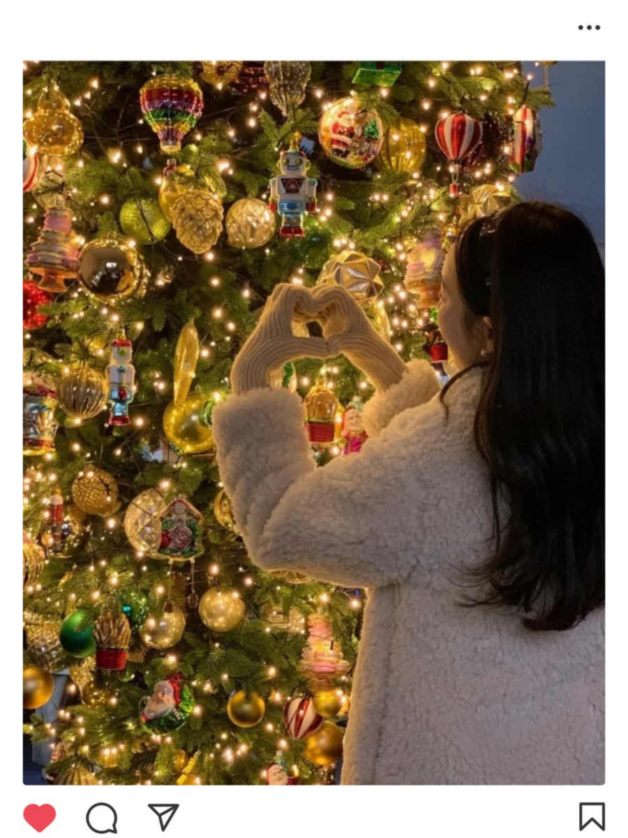 圣诞节拍照姿势 12:明星同款构图,圣诞树当前景秒变大片