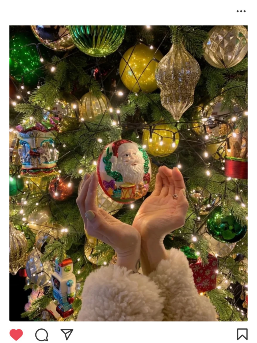 圣诞节拍照姿势 10:聚焦圣诞树挂饰,双手托起细节之美