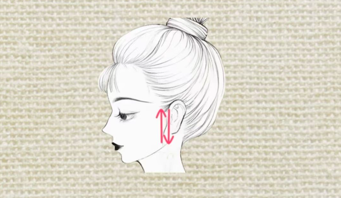 👉 怎么做:食指和中指张开,夹住耳根位置,轻轻上下搓动,直到耳根感到微微发热。