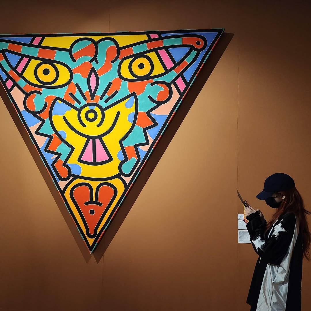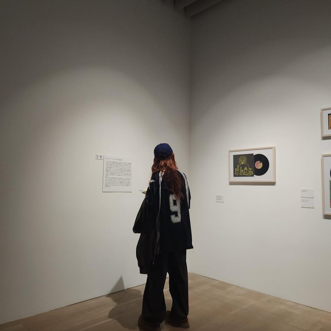 背影是所有看展照片中最容易成功的姿势,因为它天然就自带神秘感与故事感。许允真常做的半身背影,是上半身靠近作品,让观众知道你正在专注欣赏作品,同时让背影成为整个构图的主角。