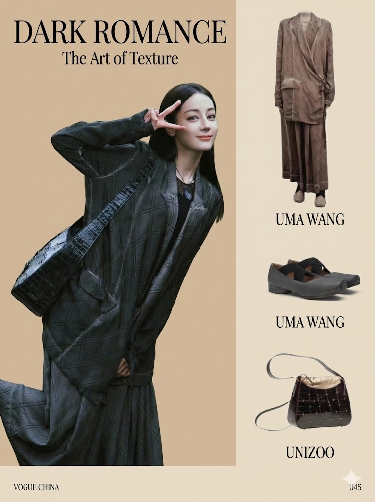 棕色蕾丝最容易显老,但 UMA WANG 就能把它做成“艺术家的颓废美”。透视、做旧、同色系包包,一套穿的不是衣服,是氛围。只有一句话:不是你驾驭它,而是它认可你。