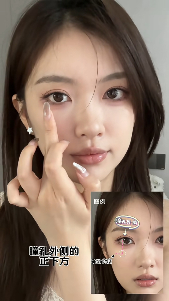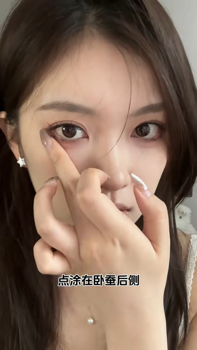 卧蚕后侧:可以再沾取少量的膏体,点涂在卧蚕后侧,和脸颊做衔接