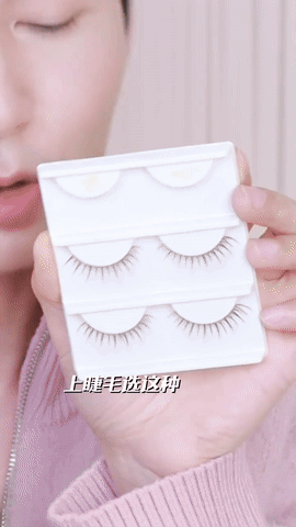 上假睫毛可以选择眼尾拉长的仙子毛,之后将其贴在眼中(贴法就是:往下压低角度,后往上抬高)这样的话眼睛就会有一种微微上扬形走向的感觉。