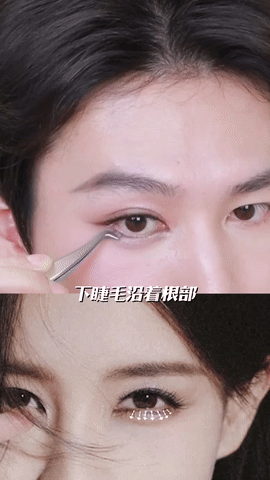 至于下睫毛则是沿着睫毛根部的位置,呈放射状贴。这样就可以增加绒绒的毛流感啦!做完以上几个步骤,月牙微笑眼就大功告成啦~