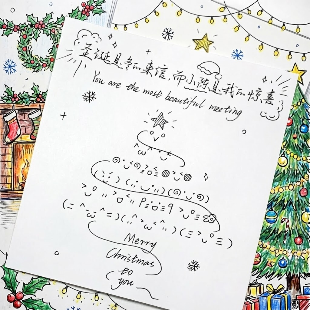 圣诞节还在送千篇一律的印刷贺卡?今年来点更有诚意的吧!比起昂贵的礼物,有时候一张亲手写下的卡片,更能温暖人心。今天小编要来教大家一个超厉害的“大招”——把祝福语写成圣诞树的形状!🎄不需要你有神仙画工,只要会写字就能完成。用文字堆砌出的圣诞树,不仅创意满分,还藏着你满满的小心思~