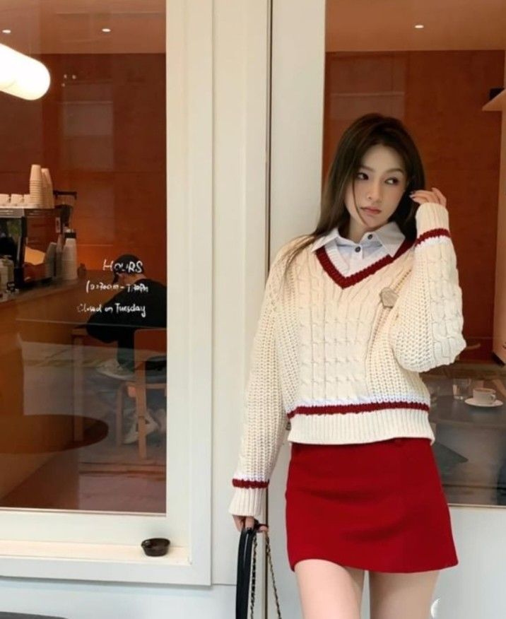 韩系穿搭在色彩选择上非常讲究,通常以明亮、柔和的色彩为主,如粉色、浅蓝色、米色等。这些颜色不仅能提亮肤色,还能在视觉上带来舒适与宁静的感觉。在秋冬季节,米白色调与红色搭配是非常受欢迎的组合,既不过分张扬,又能展现出韩系穿搭的精髓。