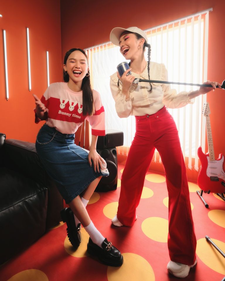 新年怎么少得了一件红彤彤的衣服呢?这款上衣以淡粉色和正红色拼接而成,既能带出新年氛围又不会过于“喜庆”,平常的日子也能轻松搭配~ 最可爱的是中间位置有三只小白兔「Bunny time」,完全呼应了兔年的主题,一定要买一件~