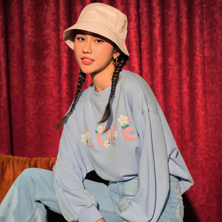 虽然这件上衣没有红彤彤的配色,也没有兔子图案的设计,但是奶呼呼的蓝色好温柔呀~ 中间粉色毛茸茸的 LOVE 字眼和几朵小花的点缀让整件上衣更添几分春日感,文艺小姐姐必入手一件呀~