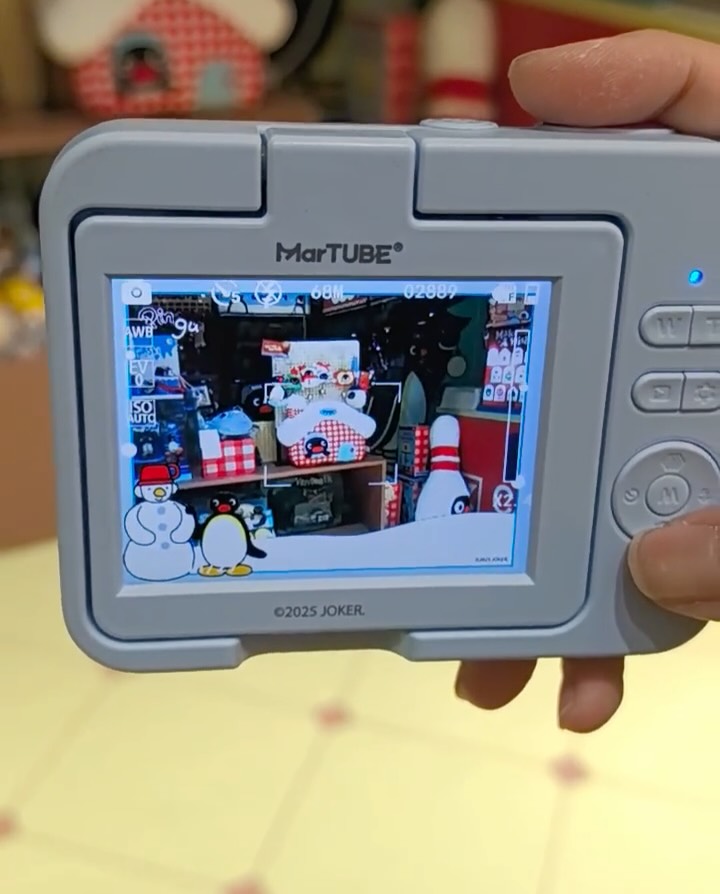 你可以让 Pingu 和他的妹妹 Pinga 陪你一起入镜,或者套用复古滤镜拍出那种千禧年 Y2K 风格的氛围感大片。虽然官方标示它拥有“一百万画素”,可能参数党会觉得不够高,但懂行的人都知道,这种稍低的像素恰恰是营造“复古 CCD 感”的关键,它自带一种天然的磨皮效果和柔光滤镜,拍出来的人像皮肤通透又带点胶片感,完全不需要再去美图秀秀推脸。