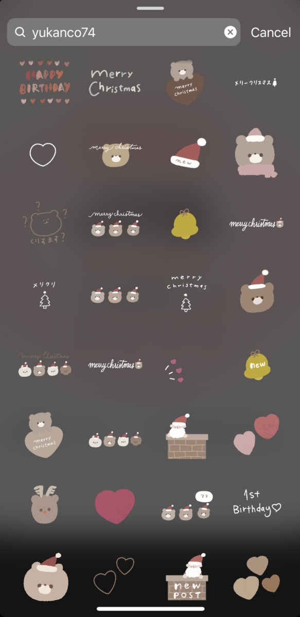 同样走这种温柔路线的还有 yukanco74 和 yukanco73 这对关键词。这两个系列简直就是大地色爱好者的天堂。yukanco74 更加注重情感的表达,你可以找到许多手写的“Merry Christmas”字样,字体圆润可爱,搭配上爱心和小熊图案,特别适合用来记录情侣间的甜蜜瞬间或是给朋友的祝福。