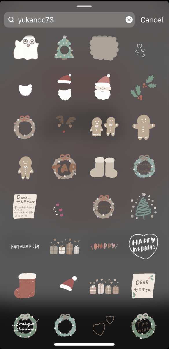 而 yukanco73 则多了一些手作的质感,里面有许多带着围巾的姜饼人、看起来毛茸茸的圣诞花环,还有那种仿佛是用粉笔画出来的粗糙线条感,用来装饰日常生活的琐碎片段,能瞬间营造出一种日杂风的精致感。