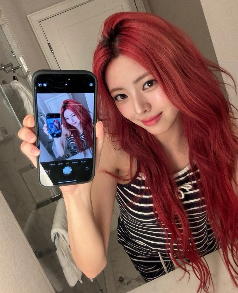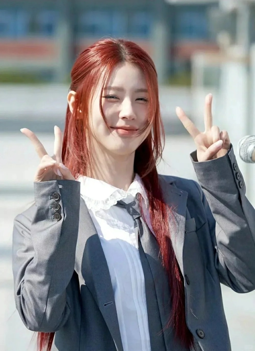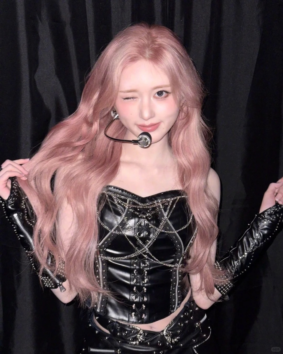 如果你担心正红色太高调,不妨参考 ITZY 李彩领这款由漂染紫色掉色后形成的独特“莓果紫红”。这种介于紫色与红色之间的色泽,多了一份神秘与温柔,且发丝间呈现出的自然深浅变化非常有层次感。这是一款低调却不失格调的发色,非常适合想要偷偷变美、惊艳全场的小心机。