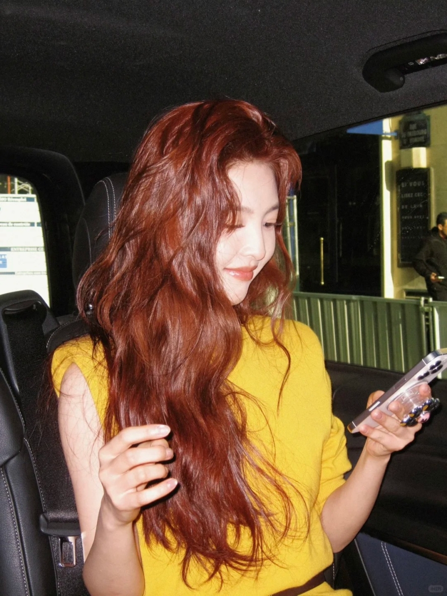 被粉丝誉为“红发的神”,ITZY申有娜(Yuna)这头红发绝对是封神之作!高饱和度的红色长发配上波浪卷,在灯光下散发着宛如迪士尼“小美人鱼”般的梦幻光泽。这款发色极具视觉冲击力,过年染这个颜色,不管是走亲戚还是朋友聚会,绝对是人群中最亮眼的存在,旺气十足~