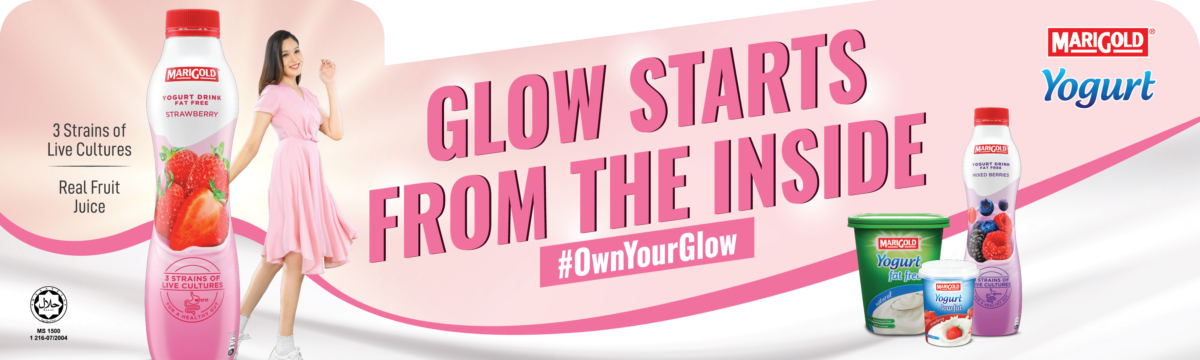 在 MARIGOLD 最新推出的 #OwnYourGlow 7日挑战中,DR Azura Abas 以及 Evelyn Tay 透过「每天一个能够轻松坚持的小习惯」,为身体补足养分,帮助她们从内而外散发好气色~现在就加入 MARIGOLD 的 #OwnYourGlow 7日挑战,每天喝一瓶 MARIGOLD Yogurt Drink,由此开始把这个养肤小妙招变成日常习惯,让美丽从内而外自然发光!