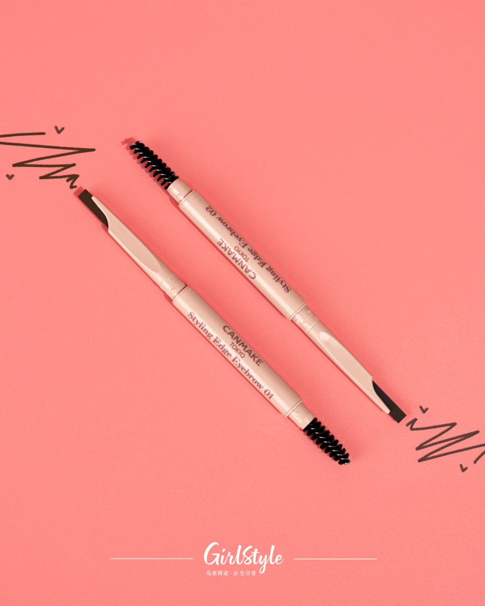 3️⃣Styling Edge Eyebrow 精细薄芯型眉笔眉毛画不好?可能是你的眉笔「太粗了」!CANMAKE 精细薄芯型眉笔笔芯只有 0.8mm 超薄方形设计,宽度却有 4.0mm,像一个微缩小平铲,既稳定好握,又能精准描绘每根毛流。一笔下去,再也不手抖!