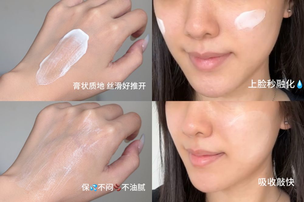 首先惊艳大家的便是它神奇的「融化」质地!刚挖出来看着像软糯的膏体,但一抹上脸,它会像雪糕一样瞬间“融化”进皮肤里,完全没有传统修护霜那种“糊脸”的厚重感,反而是出奇地轻盈保湿~吸收后会在肌肤形成一层透气的保护膜,完全不会有闷痘感,修护屏障的同时,还能改善肌肤粗糙纹理,让肤感变得平滑细腻!