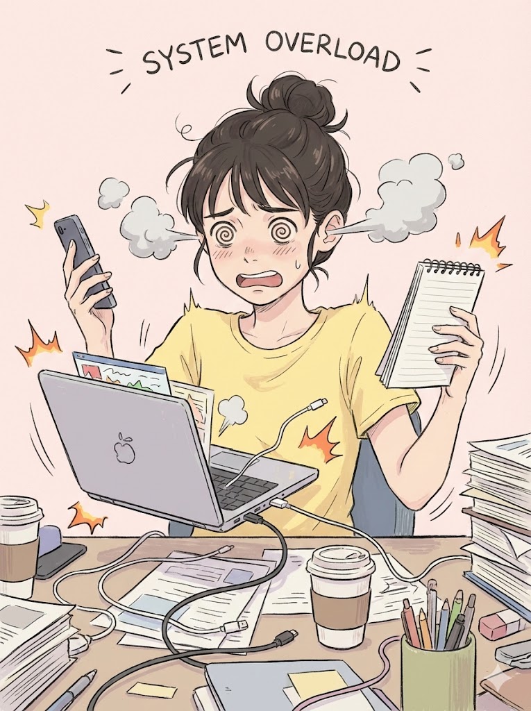 大脑在不同任务间频繁急刹车和重启,会极度消耗宝贵的认知资源。这种低效的模式会让你的专注力大幅下降,让大脑感到透支。