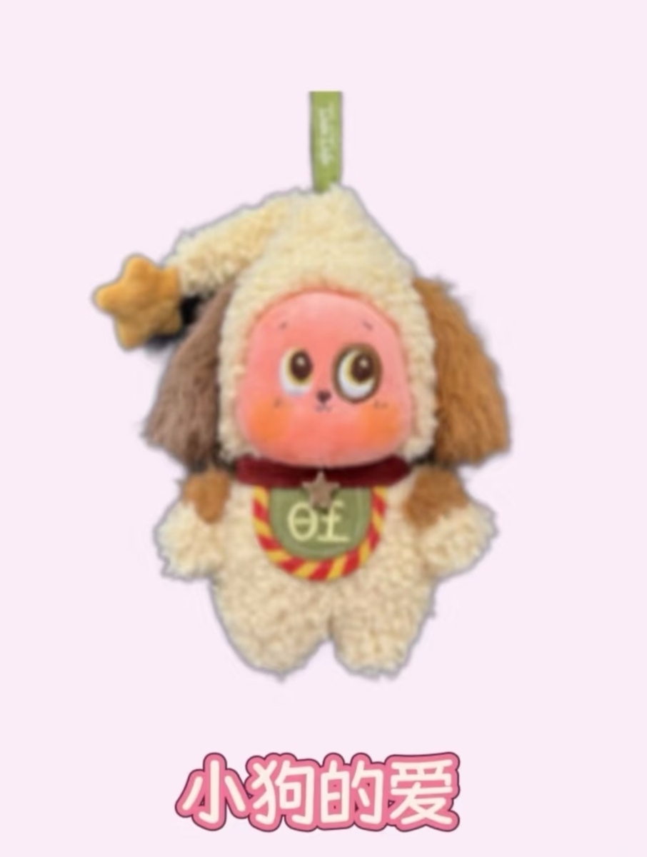 这次最让我尖叫的,绝对是那对官方按头嗑的 CP——“小狗的爱”和“猫猫恋人”!设计师真的太懂了,直接把恋爱中的两种人格做成了挂件。“小狗的爱”完全就是那种黏人的“修勾男友”,眼神清澈愚蠢(划掉,是真诚),尾巴仿佛下一秒就要摇上天,满眼都是“主人贴贴”。